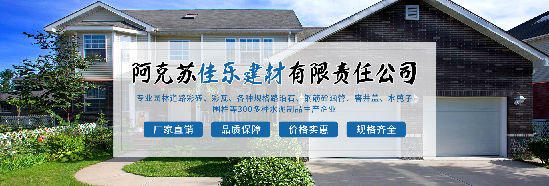 阿克蘇佳樂(lè)建材有限責(zé)任公司成立于2005年,是園林道路彩磚、彩瓦、各種規(guī)格路沿石、鋼筋砼涵管、窨井蓋、水蓖子、圍欄等300多種水泥制品生產(chǎn)企業(yè)。阿克蘇佳樂(lè)建材有限責(zé)任公司位于阿克蘇市塔南路13號(hào)(石油公司往南200米)?,F(xiàn)公司在阿克蘇市、阿瓦提縣、烏什縣、拜城縣、輪臺(tái)縣、焉耆縣等地有分廠十余個(gè),為地方城鄉(xiāng)建設(shè)添磚加瓦。 多年來(lái),公司致力于設(shè)備的更新,新產(chǎn)品的研制,用更科學(xué)更美觀的產(chǎn)品順應(yīng)...